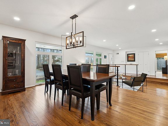 Step into style, space, and sophistication in this beautiful contemporary home on an expansive .49-acre lot in desirable Manor Park. With 4 spacious bedrooms, 2 sleekly updated full bathrooms, and an open-concept layout flooded with natural light, this home is designed for effortless modern living and entertaining. At the heart of the home is a chef-inspired kitchen featuring modern white cabinetry and a dramatic quartz waterfall peninsula—perfect for hosting or casual everyday meals. The sunken living room invites relaxation with a striking marble-wrapped fireplace, floating glass shelves, and built-in granite seating. A second stone-clad fireplace adds cozy charm to the family room. Enjoy true indoor-outdoor living with large windows and sliding glass doors leading to multiple private outdoor spaces—including a deck and patio off the bedrooms, winding paths, a firepit area, and extensive hardscaping—all designed for peace and play. The lower level offers flexibility for a rec room, gym, home office, or guest space, complete with a half bath, laundry, and generous storage. Other highlights include a young roof (2019), floor-to-ceiling remote-controlled custom window treatments, slate tiled bathrooms with floating vanities, and a spacious layout with modern finishes throughout Residents can enjoy access to Manor Country Club amenities—including pools, tennis, pickleball, fitness, and social events—with the membership initiation fee waived. Commuters will love the quick access to ICC, Metro Red Line, and major routes to Baltimore and D.C. This home is a rare blend of style, function, and location—schedule your private tour today!