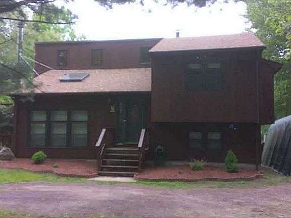 Private Setting on 5 wooded acres! Excellent 3 Bed Contemporary Split.New roof/windows! CENTRAL A/C! Loft Kitchen Overlooking Lower Level LR w/ Wood Stove. Sliders to Deck, Big Fenced Yard. Above Ground Pool. Walk Out Lower to big fenced in yard.