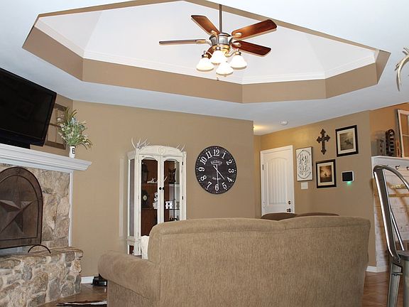 Showstopping curb appeal with meticulously maintained landscaping and custom flower beds. Exterior is stone and brick combo. Larger, fenced yard with spacious covered patio. House is open floor plan with beautiful high ceilings and ceiling treatments in several spaces throughout. Tile in living, dining, kitchen, and halls. Carpet in bedrooms was installed 5/25/2019. Corner stone fireplace in the family room for easy furniture arrangement. This one won't last long!