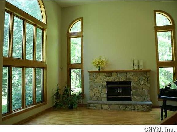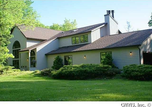 Escape to your own woodland retreat in this 3,900 sqft contemporary! Property is nestled in the woods w/privacy & full walkout lower level to three tier deck that leads to flat area boardering feeder creek. 1,250 sqft lower level w/enormous game/media room or gym, full bath, bedroom & large family room with woodburning fplce. Main living foor features dramatic windows open to nature, cathedral ceiling & hearth warmed great room, kitchen with granite counters open to family room + bonus office or 6th bedroom with full bath. Enjoy the space & serenity! NEW THERMAL GLASS IN WINDOWS + 50yr Roof!