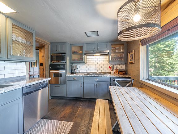 Absolutely adorable updated Old Tahoe home with filtered lake view and access to the Cedar Flat private beach and pier. This home has three bedroom, one downstairs with a queen bed and two up with a king and queen bed, and a designated office space. The home has a gas stove to keep the home cozy and is beautifully furnished.