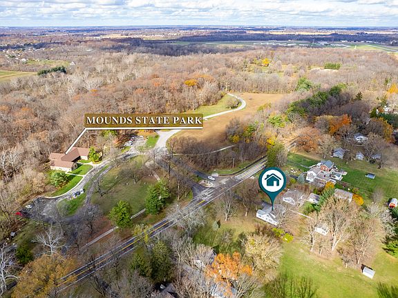 Welcome to your private retreat! This spacious 4-bedroom 1.5-bathroom home sits on over 4 acres of beautiful land with mature trees offering a picturesque setting across from Mounds State Park! Inside you will find refinished hardwood floors on the main level, beautiful tray ceilings, and a spacious kitchen with stainless steel appliances! The upstairs has 2-bedrooms with new LVP flooring. Additional updates include new paint, light fixtures and ceiling fans. There is plenty of space in the 2-car attached garage and a detached garage in back. Whether you are seeking a peaceful family home or a nature lover's dream, this property has it all!