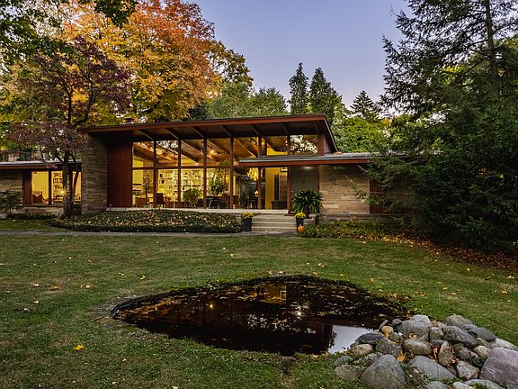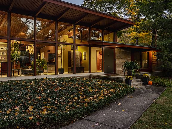 MID-CENTURY MODERN in heart of Meridian-Kessler; 3 BR/2.5 baths; 11-foot floor-to-ceiling windows overlook park-like front lawn with mature trees, Koi pond and bocce court; post-and-beam construction; light-filled house remains true to 1953 (original SS kitchen counters and cabinets, built-ins throughout house) but is also tastefully updated - with a significant addition (designed by Mark Demerly, built by Bly Bennett 2018), new membrane/commercial grade roof (2015), new HVAC system (2025), new kitchen appliances (2024). Backyard consists of a large, private, walled, professionally landscaped garden and patio designed for entertaining/dining.