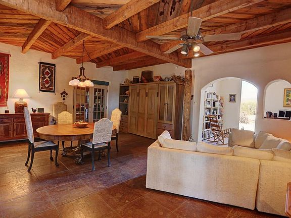 Escape to your own private desert retreat! Lovely 2 bedroom, 2 bath Santa fe home with studio-guest house on 3.37acres of lush Sonoran Desert. Guest house can be used as a 3rd bedroom. High, wood beamed ceilings, saguaro ribbed cabinets & doors, southwestern colors and Kiva fireplace create a unique southwestern charm. Enjoy beautiful sunsets from the covered veranda, then take a moonlight swim in the pebble-tech pool. Studio-Guest house with fireplace, adds to the charm of this One of a Kind property. Additionally, there is a Workshop with electric, storage space and one car garage. Located adjacent to the Saguaro National Park with views of the Tucson mountains as well as Kitt peak.A fabulous place to call Home!