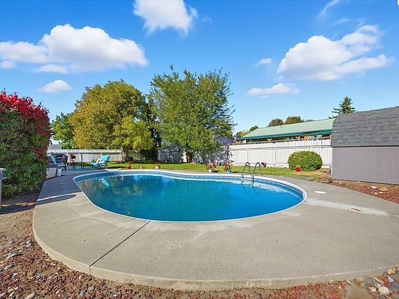 MLS# 288782 Welcome to this inviting home that blends comfort, style, and outdoor fun. Situated on a 0.23-acre lot, w/in-ground pool, near Golf Land Golf Course, this property offers a lifestyle of convenience and relaxation. Inside, crown molding, rich finishes, and a cozy wood-burning fireplace create a warm and welcoming atmosphere. The kitchen is designed for both function and charm, featuring a tiled floor, smooth-top range, dishwasher, microwave, refrigerator, farm sink, full-height backsplash, and a pantry for excellent storage. The primary suite is a private retreat with a stylish barn door slider leading to the ¾ bath, while the guest bath is a full bath, thoughtfully updated for family and visitors alike. Step outside to your own backyard getaway. A vinyl-lined, in-ground pool is ready for summer days, while the fully fenced yard provides plenty of space to relax, entertain, and garden. A storage shed adds convenience, and the newer exterior paint enhances curb appeal. Additional highlights include a 2-car garage with built-in shelves, perfect for storage or hobbies. With its combination of thoughtful updates, comfortable living spaces, and a backyard oasis, this home is truly a special find.