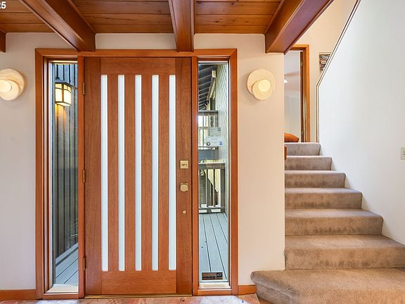 Masterpiece in Bridlemile. A labor of love, this beautiful NW Contemporary home has been thoughtfully updated with custom touches throughout. Warm cedar walls with soaring vaulted ceilings will have you wanting to cozy up to a warm fire and your favorite book while taking in the amazing light that trickles into the living room. The kitchen has been elegantly remodeled with Quartzite countertops, luxurious kitchen sink & faucet, beautifully crafted inset cabinets and all new high-end appliances making this truly a dream kitchen. With an open concept layout, the kitchen overlooks the additional dining area and great room that has been customized with warm oak wood floors, a rich wood accent wall w/ built in nooks, gas burning fireplace and access to 1 of 2 decks located on the main level. The primary bedroom is a true owners suite with a walk-in closet, 2 balconies, new oak wood floors, remodeled bathroom w/ terrazzo tile flooring, soaking tub, double vanity/sink and private rain shower wrapped in high-end zellige moroccan tile. Formal dining room features rich boxed beamed ceilings with plenty of room to host your next dinner party. This 4000+ square foot home has 4 total bedrooms, 3.5 bathrooms that have all been remodeled, new laundry room & 2 additional bonus rooms on the lower level with access to an additional bonus living room/theater room. Large .45 acre lot with 3 car garage, gated access and plenty of privacy, all perfectly tucked away just off of SW Hamilton St minutes to Downtown Portland, NW Trails & award winning restaurants. [Home Energy Score = 4. HES Report at https://rpt.greenbuildingregistry.com/hes/OR10201914]