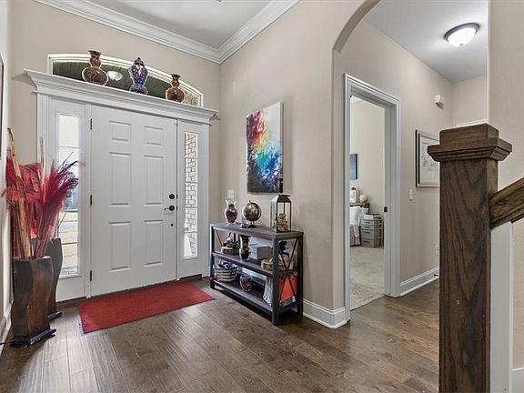 Situated in the highly sought-after Cornerstone Ridge community of Bentonville, this exceptional home perfectly blends sophistication, comfort, and style. Ideally located just minutes from Walmart Headquarters, Coler Mountain Bike Preserve, and vibrant Downtown Bentonville, with easy access to I-49 only four miles away. Featuring an open and inviting floor plan, the home showcases a beautifully designed kitchen with a spacious center island, abundant cabinetry, stainless steel appliances, and a gas range. The bright living area highlights a brick gas fireplace, crown molding, and elegant engineered hardwood flooring. The primary suite offers a private retreat complete with a spa-inspired bath featuring dual vanities, a jetted tub, a walk-in shower, and a generous walk-in closet. A versatile bonus room provides flexibility for a fourth bedroom, home office, or playroom. Enjoy outdoor living on the covered patio and extended wood deck, perfect for relaxing evenings or entertaining guests.