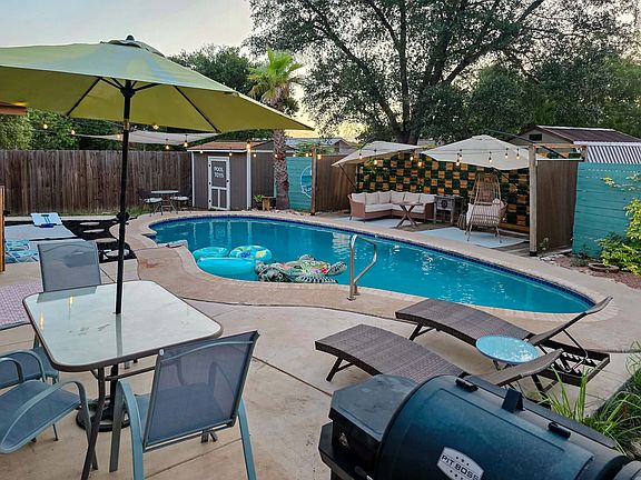 Welcome to Breeze Blue Home, a beautifully minimal yet cozy retreat in a quiet neighborhood near San Antonio's top attractions and airport. This single-story fully furnished home features 3 bedrooms (king, queen, and two twin beds) and 2 full bathrooms, offering comfort for families or small groups. Enjoy WiFi, AC, a fully equipped kitchen, and a washer/dryer. Relax in the heated pool and outdoor lounge area, perfect for unwinding. Rent this home and experience comfort, convenience, and tranquility!