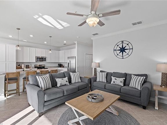 Spacious and spectacular! The Birkdale Terrace home offers open and inviting 1,154 square feet of living space. Open concept living room and kitchen with large island and adjacent dining area. The Primary suite boasts a large walk-in closet and inviting bath, plus a second bedroom with adjoining bath perfect for guests. Living Room also has a sleeper queen sofa. The screened lanai ushers in balmy breezes - the perfect spot for quiet time with a good book. The Babcock National Amenity Center includes a clubhouse, restaurant, tennis and pickleball courts, resort-style pool with lap lanes and spa with a tiki bar and a state-of-the-art fitness center, along with a sauna and Day Spa for your use. The Clubhouse and Restaurant will be coming in the near future. Living in Babcock National awards you access to the Babcock Ranch amenities which include: 2 pools, Gas fireplaces and grill cubicles for entertaining, tennis courts, bocce ball courts, pickleball courts, basketball courts, open field areas. For an additional cost, there is a 2-story fitness center that provides physical therapy treatments, lap pool, free classes, weights, basketball court, Pilates studio, massage center to name a few. Along with these amenities, downtown Babcock Ranch gives you the Lakehouse Restaurant, Slaters Provisions, Coffee Shop and Ice Cream Store, Security office, walking trails, and many small businesses just a walk away.