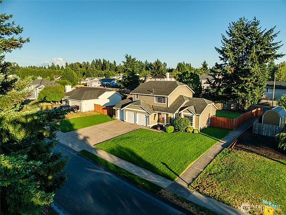 Welcome home to this gorgeous home located in the desirable gated community of Classic View Estates! Enjoy a kitchen that shines with newer tile counters, plenty of cabinet space, and stainless steel appliances. Vaulted ceilings elevate the formal living and dining rooms, creating a spacious and inviting atmosphere. Outside, the large fenced backyard features a massive covered deck, flower beds, a gorgeous lawn, and ample space for your RV and boat. This home features a three-car garage with brand new garage doors. Walking distance to schools K-12 and just minutes to JBLM, shopping, parks, and dining. This move-in ready property blends modern upgrades with timeless comfort in a prime location. Don’t miss your chance to call this one home!