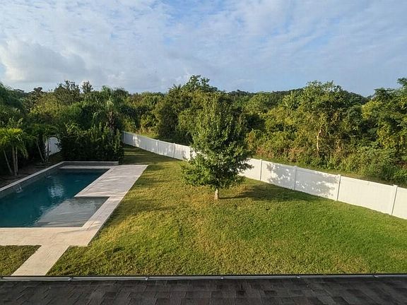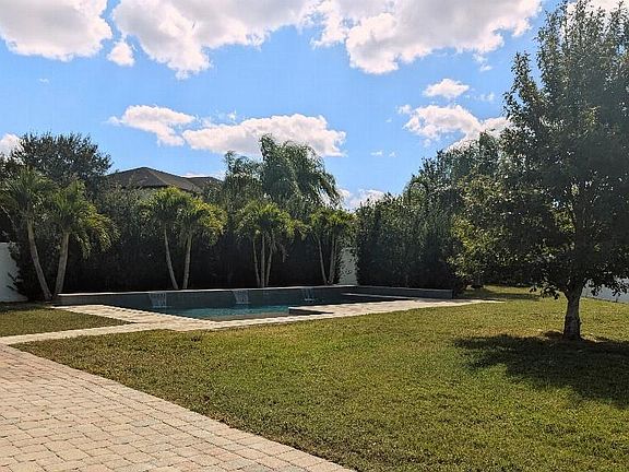 Executive Pool Home in Private Cul-de-Sac — Steps from Lake Nona! Discover a rare opportunity to own a spacious two-story executive home in a quiet cul-de-sac within a gated community just outside Lake Nona. This location offers exceptional value — enjoy a larger home, lower taxes, and no CDD fees, all just minutes from the heart of Lake Nona. This property is incredibly private, with only one side neighbor and peaceful views of a lush tree farm visible from nearly every room in the house. Inside, you’ll find five bedrooms, three full bathrooms, kitchen built for entertaining, and a large upstairs laundry room for convenience. The primary suite features dual walk-in closets and plenty of natural light. Upstairs also includes a bonus/movie room roughly the size of a two-car garage — perfect for entertainment, a home gym, or multi-purpose living. The home is built for indoor-outdoor entertaining, with an oversized covered porch and travertine pool deck surrounding an extra-large swimming pool complete with a tanning ledge. Sitting on one-third of an acre, there’s abundant room for personalization — whether adding a summer kitchen, firepit, or garden. This home truly combines privacy, space, and value — a standout find just beyond Lake Nona’s city limits.