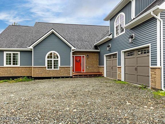 Do not miss this remarkably picturesque opportunity located in Wasilla AK. It has it all. Private airstrip, Cottonwood Lake access, Mud Lake Access & a private pond! The 5 bedroom 3.5 baths and large living space is room for all. In addition the1640 square foot unfinished walkout basement is plumbed & electrically roughed-in. It's a great start & the materials to finish will stay w/ PropertyPerfect for entertaining, a MIL or rental income is waiting for you to make it your own. The possibilities are endless here. Light and bright south facing main living area vaulted ceilings, and views of Pioneer Peak on clear days. Open kitchen with custom finishes including a pot filler over the oven, and granite counter tops. Main level owner's suite has a huge soaker tub and multi head walk in shower. The second owner's suite over the garage features its own bathroom perfect for teens. Home is on 5 acres with no name lake out back excellent for pond hockey in the winter. Small Mud lake front plot adjacent is also included in the sale