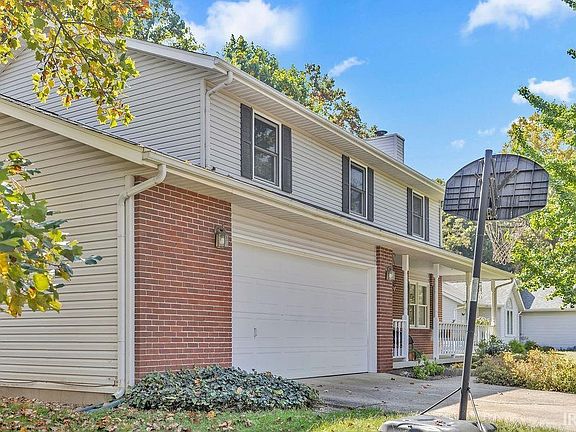 Located in the highly desirable Gentry Estates on Bloomington’s east side, this spacious 4-bedroom, 3- full bath home offers a perfect blend of comfort, functionality, and convenience with an impressive $$ per sq ft value. Just minutes from Indiana University, IU Health, shopping, dining, and the community pool, the location is ideal for enjoying all the east side amenities. Owned by the same family since 2002, the home features a thoughtful two-story layout with a circular-flowing main level, ideal for both everyday living and entertaining. The living room centers around a wood-burning fireplace, creating a warm and inviting atmosphere. The eat-in kitchen includes a sit-at bar and opens to a casual dining area, perfect for family meals and gatherings. Upstairs, the primary suite impresses with a volume ceiling, a spacious walk-in closet, and a private en suite bath featuring a step-in shower. Three additional bedrooms and two more full baths provide ample space for family or guests. The exterior showcases a classic brick and vinyl façade, a covered front porch, and a level yard. The private backyard includes a large deck, ideal for outdoor entertaining or quiet relaxation. Additional features include an oversized garage and a mudroom with extra storage. This nicely-cared-for home offers timeless appeal in a prime location offering a great value.