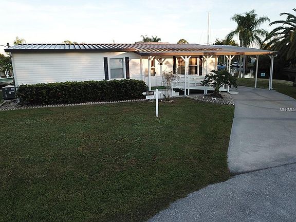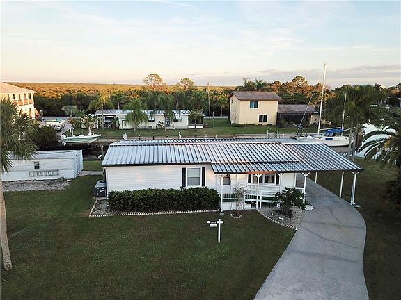 You only need to pack your toothbrush and fishing pole for this 2 bedroom 2 bath waterfront home. The home is turn key - move in ready and provides beautiful water views. Located on a tip lot that is only 3 MINUTES TO OPEN WATER WITH SAILBOAT ACCESS AND 250' OF CONCRETE SEAWALL with a 12'X18' concrete inset dock, your boating and fishing opportunities are endless. There is plenty of room for a boat lift for your fishing boat and a large sailboat - all at the same time. Quiet area with a feel of a tropical oasis but only 5 miles to the mall, 4 miles to Charlotte County Sports Complex where the Tampa Bay Rays have spring training, close to dozens of golf courses, close to beaches, marinas and restaurants. There is plenty of fun and entertainment here! Come see for yourself. Call today for a tour by land and/or by sea. Listing agent is available to take you on the short ride from the home to Charlotte Harbor so you can see for yourself the beauty and magnificent lifestyle that is waiting for you here!