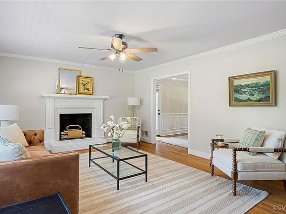 Welcome to this classic brick tri-level in the heart of Stratford Hills, just steps from the James River! Freshly painted inside and out, this charming home offers the perfect blend of character, space, and location for nature lovers and city dwellers alike. Step inside to find a light-filled living room with hardwood floors, crown moulding, and a cozy brick wood-burning fireplace. The adjoining kitchen features stainless steel appliances, a ceramic tile floor, and a breakfast nook, while the connected dining room is perfect for gathering with family and friends. Upstairs, you'll find three bright and spacious bedrooms, all with hardwood floors and great closet space. This level features a full bathroom, and the primary bedroom includes its own private half bath. Don’t miss the walk-up attic offering incredible storage potential. The lower level features a large family room with brand-new vinyl flooring, plus a generous laundry room, an additional flex/storage room with built-ins, and a second half bath. Outside, a concrete patio overlooks the backyard, perfect for relaxing or entertaining. Electric heat pump installed in 2022. All of this just minutes from the James River Park System, Pony Pasture, and easy access to downtown. Whether you're hiking, biking, kayaking, or commuting, this location is hard to beat.
