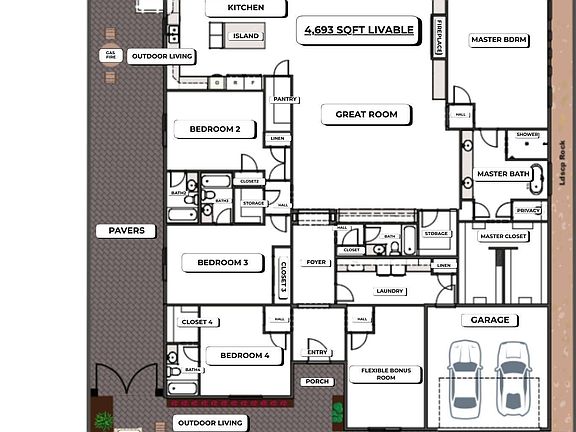 Generous master suitePremium wood flooringLarge elegant bathroomSubstantial his-and-her walk-in closetLarge master bedroomBeautiful walk-in showerLarge bright great room