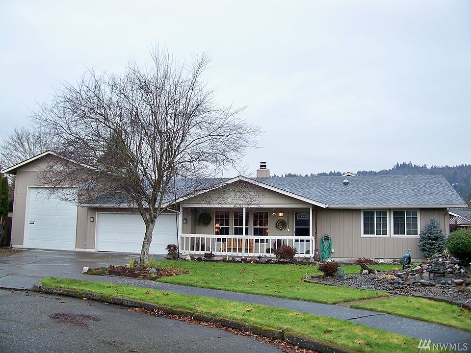 Beautiful updates have been completed on this home. Cherry cabinets, granite slab counters, pantry, Stainless Steel appliances and bar. Dining area/family room with fireplace off of kitchen. Master is oversized and has a walk in closet, Recently updated bath with granite counters, double vessel sinks and Cherry cabinets. Large living room with lots of light. Covered front porch and partially covered back deck. Forced air heat w/heat pump, brand new roof and 18x36 RV Shop with 12' high door.