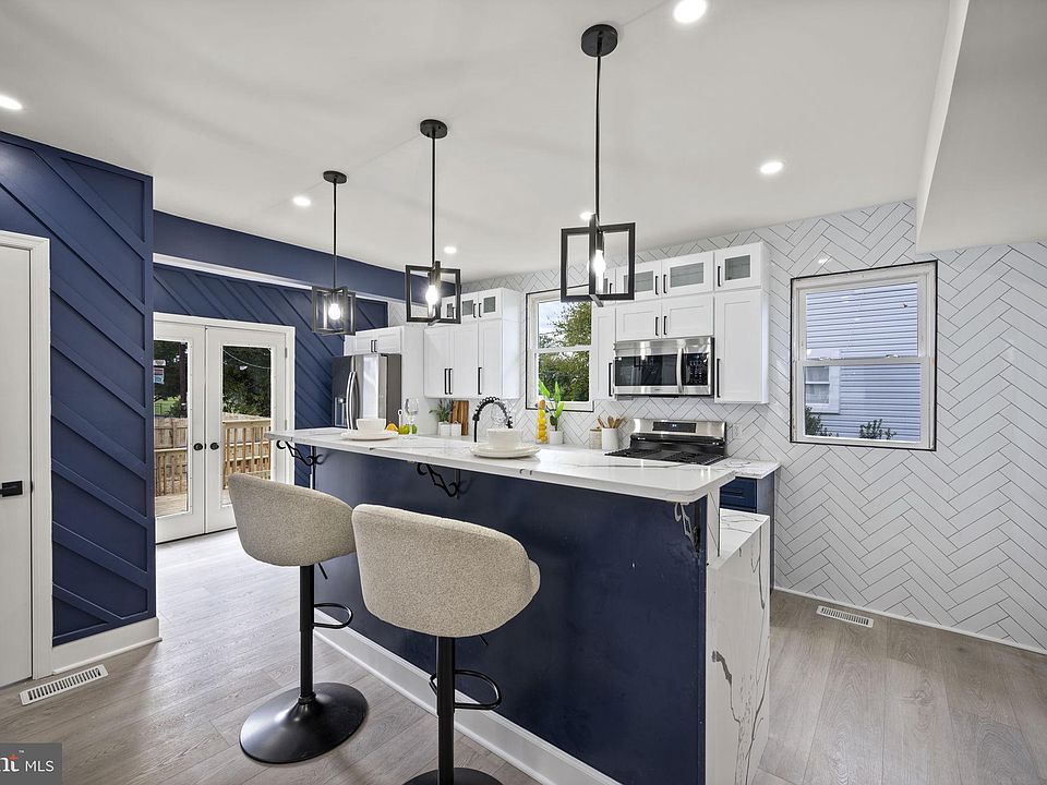 Sleek finishesSpacious main levelThoughtful designCustom two-tone cabinetryDetached garagePrivate drivewayLarge windows