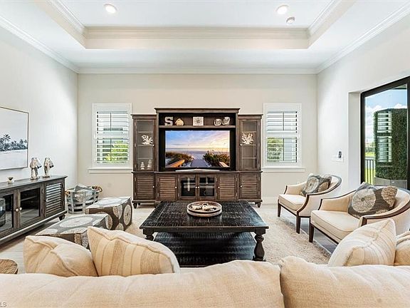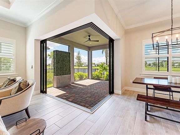 Welcome to this stunning, newly built 2024 Mystique Floor Plan, perfectly situated on a serene lakefront lot. This home offers the ideal combination of luxury, functionality, and style, with 3 bedrooms plus a den, 2 bathrooms, and a spacious 2-car garage. Boasting over $165,000 in premium upgrades, every detail has been thoughtfully curated to elevate your living experience. Inside, you’ll find elegant diagonal-set, high-quality tile flooring throughout, along with 8-foot upgraded interior doors and beautiful 8-foot French glass doors in the den. Tray ceilings with crown molding add architectural interest, while plantation shutters and upgraded interior paint create a refined, cohesive aesthetic. Designer LED downlights and 11-foot volume ceilings enhance the home’s bright, open feel, and zero-corner sliding glass doors provide a seamless transition between indoor and outdoor living—perfect for enjoying the fall and winter seasons. Tech-savvy touches include CAT6 phone/data outlets and two pre-wired locations for flat-panel TVs. The spacious primary suite offers a private retreat with a luxurious ensuite bathroom, featuring a large walk-in shower with tile to the ceiling, dual quartz vanities, a private water closet, a linen closet, and an expansive walk-in master closet. The gourmet kitchen is equally impressive, showcasing high-level cabinetry, brushed nickel hardware, quartz countertops, a stylish backsplash, Kitchen Aid professional stainless steel appliances, an upgraded range with energy-efficient hood vent, and a large single-basin sink. A spacious pantry, generous island, and pre-wiring for custom pendant lighting make this kitchen ideal for both daily living and entertaining. The laundry room includes a built-in sink, Maytag front-loading washer and dryer, and extra room for storage. The garage includes epoxy-coated flooring and a 4-foot extension that provides additional space for storage or a workshop area, along with convenient keyless entry. Outdoor living is a dream with the extended, covered, and screened lanai—perfect for relaxing or entertaining while enjoying picturesque lake views and peaceful sunsets. The home’s exterior is finished in the elegant Coastal Cadet palette, enhanced by a stylish stone elevation that adds timeless curb appeal. This move-in-ready residence is one of the most extensively customized Mystique models in the community, combining luxury finishes with thoughtful upgrades at every turn. Don’t miss your chance to make it yours.