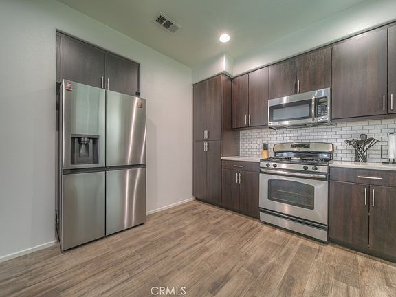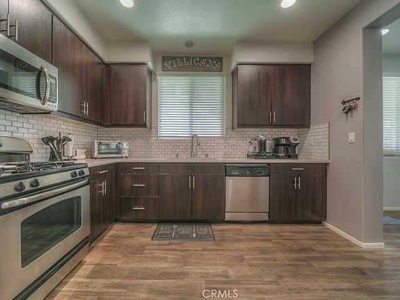 Just fell out of escrow. Buyer could not perform. Their loss your win! This is a beautiful upgraded two level 3 Bed + 2.5 bath home with paid off solar panels It boasts an open floor plan that is made for entertaining and is ready to move into. You walk in through the private side entry to find an open floor plan with high ceilings, recessed lighting, gorgeous tile plank flooring and stunning kitchen with large quartz counter tops and subway tile back splash. It has stainless steel appliances a large farmer’s sink with an upgraded faucet and plenty of natural light coming from the large kitchen window.