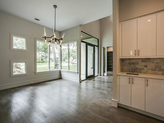 Sleek and stylish describe this stunning Garvey Homes contemporary new construction. Huge family rm open to the kitchen & breakfast area is ideal for entertaining and family living. The floorplan features a downstairs gamerm-media, study, luxurious master suite & a guest bedroom. Upstairs has 3 Br's with private baths and a loft lv area. Chef's kitchen includes a large island with Quartz countertops, sleek white Belmont cabinets, SS Thermador appliances, 48in refrigerator, duel fuel range & dble dishwashers. Main living area has a wall of windows & doors to large covered patio with built in Alfresco grill. Beautiful treed lot on quiet street near Hockaday, Jesuit, ESD, & TownNorth YMCA. Simply beautiful.