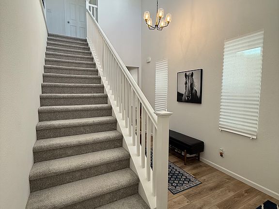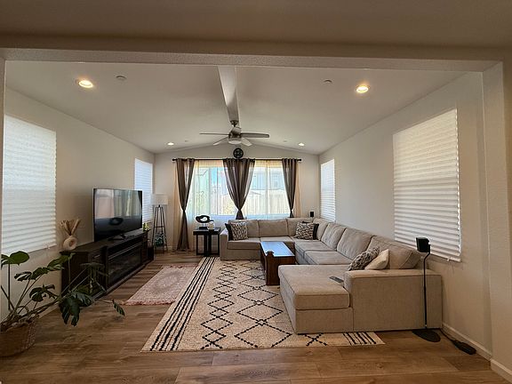 - Can be furnished for additional cost (Living spaces Couch, Costco designer TV console with fireplace, modern dining table with 6 chairs, King size bed with 10 inch mattress, Side tables, 3 Barstools for the Island countertop, Entryway console)
