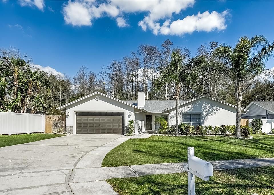 This is a rare opportunity to own a stunning home with a panoramic wooded view overlooking Brushy Creek and a spacious 0.38-acre lot (78x205). Nestled in a serene, park-like setting, this 4-bedroom, 2-bath home features a 2-car garage and an expansive driveway. The outdoor oasis feels like a resort with a screened-in lanai, outdoor living area with a built-in bar and a pool. The entryway leads into an open floor plan, featuring a spacious family room, dining area, and a separate formal living room with a fireplace, vinyl plank wood flooring, and vaulted ceilings. The gourmet kitchen boasts wood cabinetry, granite countertops, a tile backsplash, a center island, and a stainless steel appliance package. The primary suite features a custom-built dresser system, while the remodeled primary bathroom offers built-in cabinetry, a walk-in shower, and a spacious walk-in closet. A separate wing has three additional bedrooms and a full bath. Additional Upgrades include: NEW Dimensional Shingle Roof 2024, NEW Interior Paint in most of the home 2025, NEW Exterior Paint 2025, Pool deck paint 2025, Updated LED Lighting in the kitchen 2-25, Stainless appliance package 2017, Vinyl Plank Floors 2023, Upgraded Primary bathroom, NEW Pool Pump 2023, Water Softener. Located just 2 miles from the Country Place Recreation Center and Carrollwood Village Park, residents enjoy access to basketball, pickleball, tennis courts, playgrounds, sports fields, a baseball field, skatepark, dog park, splash pad, and more. Zoned for top-rated schools, including Northwest Elementary and Sickles High School. This home is also close to shops, restaurants, golf courses, and Citrus Park Mall. Easy access to the Veteran’s Expressway, Tampa International Airport, Downtown Tampa, and just 45 minutes to Clearwater/St. Pete beaches.