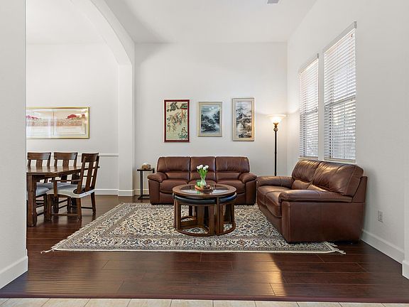 Welcome to 4308 Hartland Way, your dream home in the heart of Rancho Cordova's Anatolia neighborhood, part of the fantastic Elk Grove School District. As you step through the stylish glass front door, you'll notice the high ceilings that make the living and dining areas feel open and airy. The kitchen is perfect for both casual meals and entertaining, featuring a center island with bar seating, chic black granite countertops, stainless steel appliances, and a convenient pantry. It opens up to a sunny breakfast nook leading to the patio, and a cozy family room with a fireplace for those relaxing evenings. With 5 bedrooms and 3 full bathrooms, this home has all the space you need. A bedroom and full bath on the first floor offer flexibility for guests or family members who prefer single-level living. The primary suite is a spacious retreat, complete with a sitting area, a walk-in closet, dual sinks, a shower, and a soaking tub. The backyard is ready for your personal touch, with a lush lawn and a generous patio that's perfect for gatherings or just unwinding. Plus, you're close to excellent schools and community amenities like pools and tennis courts. Come see why 4308 Hartland Way feels like home!