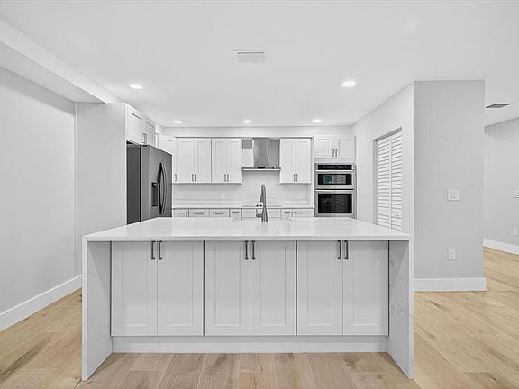 Modern finishesQuartz countertopsSleek contemporary kitchenInviting open floor planStainless steel appliancesPeaceful fully fenced backyard