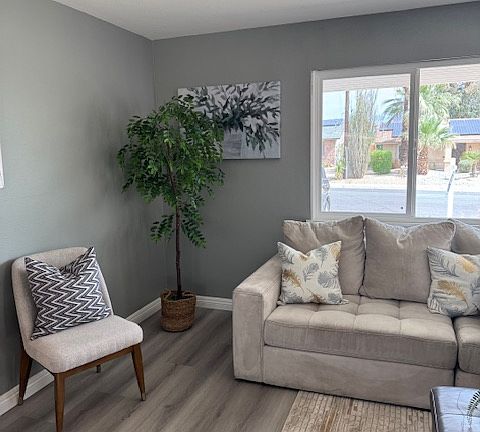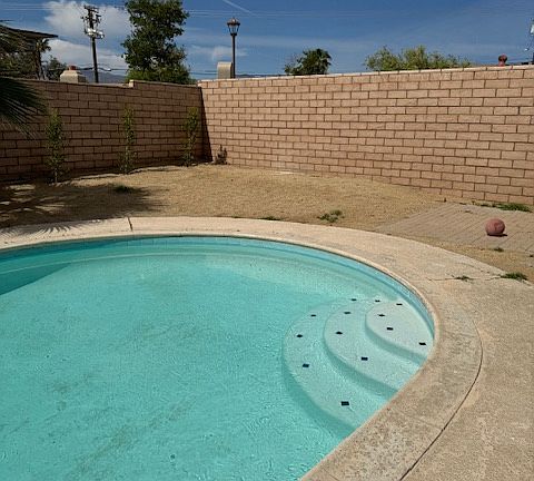 Newly remodeled 3 bedroom 2 bath; new flooring throughout, laundry room hookup, new stove and microwave with dishwasher, new garage, renovated pool, A/C, solar to help keep utility bills low,, and ceiling fans, walking distance to park and golf course.