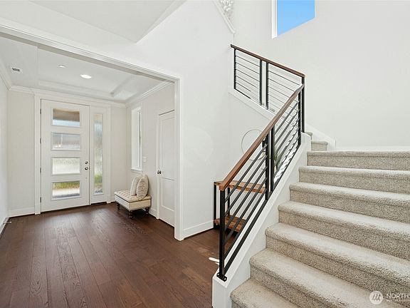 Welcome to East-Facing sun drenched home tucked in a peaceful cul-de-sac with full bedroom & bathroom on main floor. Entertain with ease in the stunning quartz island kitchen, then relax in the open loft bonus room with vaulted ceilings & oversized windows facing west to enjoy perfect sunsets. The luxurious primary suite features a spa-like 5-piece bath & walk-in closet. Upstairs find another East facing Bonus room/Living room with high ceiling window wall. There are 3 more bedrooms & bathroom to enjoy the second floor. Enjoy outdoor living with a covered patio, low maintenance synthetic turf, fruit trees & fencing for privacy. Other features include AC, MyQ smart garage opener, LeafFilter gutter system & custom chandelier. Pre-inspected!!