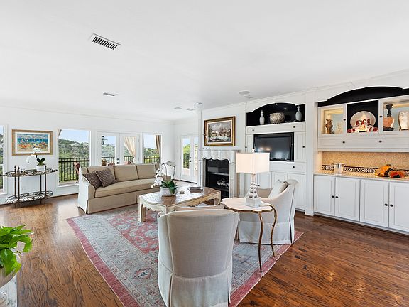 Enjoy stunning panoramic views from this remarkable townhome in the heart of Northwest Hills and coveted 78731. Upon entering the glass front door, you will be captivated by the inviting living room featuring a fireplace and built-in cabinets. This hidden retreat is flushed with natural light and gorgeous greenbelt views from the walls of windows across the entire back of the townhome. The generously sized, newly redone (2023), and private back deck, offers the perfect spot for enjoying beautiful sunsets. The kitchen is equipped with a center island, built-in breakfast area, and elegant granite countertops. Upstairs, you will find the primary room, two additional bedrooms, and two full baths. The spacious primary suite features a balcony, separate shower/tub, dual vanities, and walk-in closet (dont miss the walk-in attic space for extra storage). The townhouse is located on a gated cul-de-sac, zoned for prestigious schools, and just minutes to downtown and the Domain. Come visit this beautiful gem!