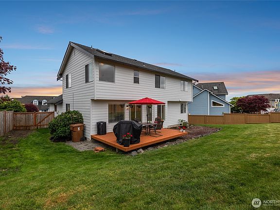 Clean, Contemporary & Move-In Ready! This beautifully updated home features a timeless neutral palette that complements any style- New Siding, new paint, new luxury vinyl plank flooring & new carpet! Inviting staircase greets you and leads to the formal living room w/custom wood mantle over fireplace and spacious formal dining room w/garden window. Fully updated kitchen with quartz countertops, large entertainment island with seating & storage! Light filled eat in kitchen and family room lead to the new deck in the fully fenced backyard, perfect for summer BBQ'S! Upstairs features all 4 bedrooms, including oversized primary suite bonus view of Mt. Rainier and updated SPA-like bath w/soaking tub! Close to Beaches, Trails, Schools & more!