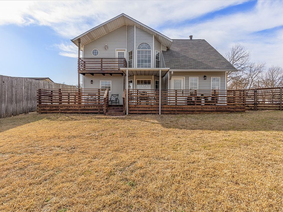 Waterfront homeDesigner finishesSecond-floor balconyPrivate lakeside yardTwo primary suitesPanoramic lake viewsOversized back porch
