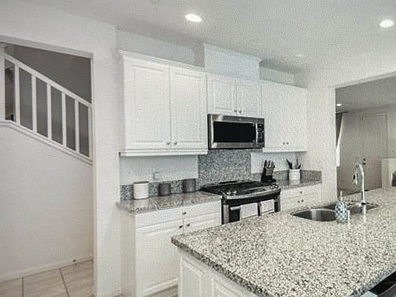 Privately located, luxury cottage townhome design with a greenbelt View in the sought after St. Cloud gated resort-like community featuring a Community rec room, Pool, Spa, fitness, playground, walking trails. Welcome home, as you step onto your large porch with a twist of southern charm accented in wainscot trim detail & pillars awaits a porch swing! Beautiful kitchen with large entertaining island, granite kitchen counters, white cabinets plus stainless appliances. Whole house new carpet & pad, +new paint, upstairs laundry! Extra storage under staircase! Spacious private patio & lounge area. Private location 3 bed 2.5 bath 2car garage with ceiling storage racks! Built by John Laing Homes.