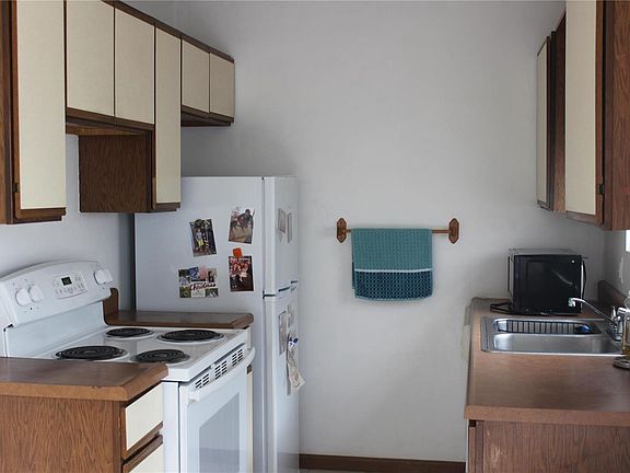 Tenants pay all utilities except trash and lawn mowing. Galley style kitchen with wood cabinets, vinyl flooring and pantry closet.