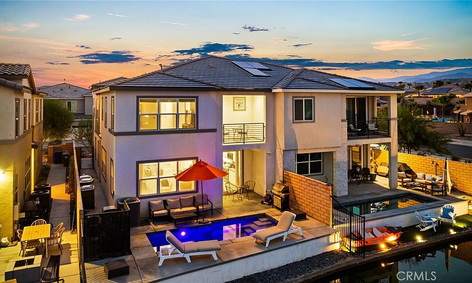 Welcome to your dream getaway at Terra Lago, one of Indio’s most sought-after gated communities! Built brand new in 2022 by Lennar, this modern lakefront home is the perfect blend of luxury, relaxation, and income potential. Step inside to a bright, open-concept floorplan with a spacious living room, stylish kitchen, and dining area designed for entertaining. The first level also features a convenient guest bedroom, while upstairs you’ll find a versatile loft, three more bedrooms, and a luxe owner’s suite with a private covered balcony overlooking the lake. Whether you’re looking for a personal vacation escape or a high-demand rental, this property delivers. The home is already professionally managed for short-term rentals, making it an easy turnkey investment. Located just minutes from Coachella Festival grounds, Palm Springs, and Joshua Tree, this is the ultimate desert retreat for you and your guests. Terra Lago offers resort-style amenities, a guard-gated entrance, golf nearby, and a one-of-a-kind lakefront lifestyle you won’t find anywhere else.