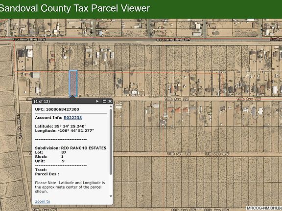 Rare find in Rio Rancho! This half acre lot is in the County, just along the City limits, with some utilities in the street. Three adjoining lots are also available. ***City Water may not be accessed being the lot is outside of City limits.