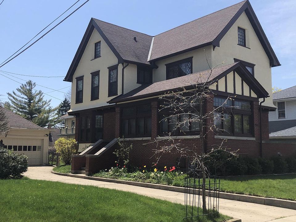 3-story brick and tudor family home only 2 blocks from Lake Michigan. Features 4 bedrooms, large eat-in kitchen with butler pantry and dining room. Living room with natural fireplace and all window sunroom. Natural woodwork and some hardwood floors. 1/2 bath off of kitchen. Full bath on 2nd level. 3rd level features large room with a pool table, 4th bedroom, large closet and walk-in storage space. Fenced-in yard. Updates include windows, roof, radiant heat installed 2019, chimney work 2023.