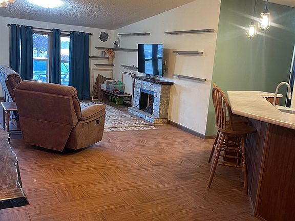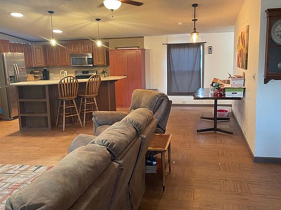Grand Mesa views! This home features pre-fab metal siding for durability and a covered front deck that enhances the inviting curb appeal. Inside, the vaulted ceilings bring brightness and openness to every space. Wood vinyl planking flows seamlessly through the living areas, kitchen, bedrooms, and baths, creating a stylish, low-maintenance look. The kitchen boasts an abundance of cabinetry for storage, a spacious center island perfect for meal prep, and bar-top seating ideal for casual dining and conversation. All bedrooms are generously sized with ample closet space. Both bathrooms feature dual vanities, one with a large walk-in shower, complemented by rich cabinet accents. Enjoy a large backyard with xeriscaped areas for easy upkeep and a lush lawn for outdoor activities. There’s plenty of room for RV parking, with NO HOA restrictions! A stone-surrounded firepit and pergola-covered back patio create the ultimate outdoor space for BBQs and relaxing in the Grand Valley climate. An outdoor shed provides extra storage or space for a small workshop. Conveniently located near shopping, dining, and only a quick drive to the I-70 corridor for easy commuting and travel!