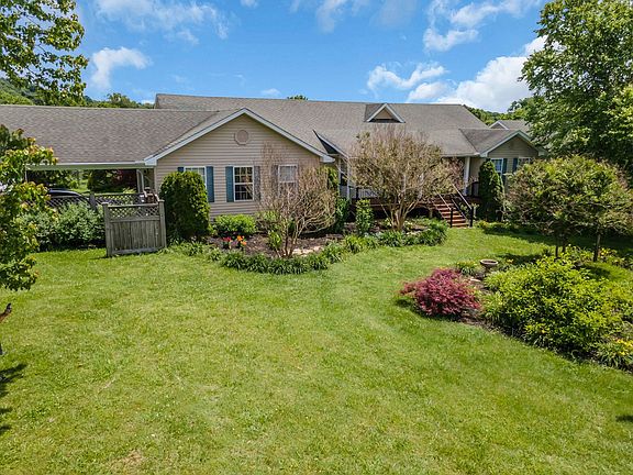 Amazing Country charm with open floorpan. ENORMOUS amount of natural lighting. HUGE kitchen with Corian countertops. Ample cabinets and counter space. Vaulted ceilings in Primary w/ private entrance to deck. Solid wood flooring, New carpet throughout. Custom blinds, Updated Light fixtures, Cozy Living room with lots of windows. Bonus media room with sink area to entertain or have a giant size den or playroom. Beautiful Primary Bath with Extra large His and Hers closets. X-Large corner lot nestled on 15 acres. Beautiful mature trees, Fruit trees, Large Garage, 30x40 pole barn, 24x36 shop as well as a 12x16 Greenhouse. Custom large dog house with big fenced in Run. Large garden area. Beautiful Pond with private entrance. Property is mostly fenced and cross fenced! Wonderful Large deck off living room to enjoy morning sunrises with your favorite cup of coffee!. Peace and serenity with complete privacy. Between Bell Buckle and Wartrace makes this a quaint location! Come and make it yours!
