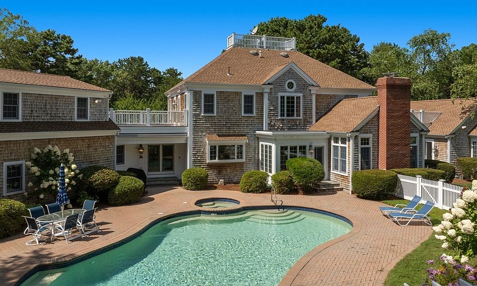 Located in Marstons Mills, this exceptional Colonial offers over 5,000 sq. ft. of finely crafted living space. Hardwood floors, cathedral ceilings, custom built-ins, and abundant natural light highlight the home’s thoughtful design. The foyer opens to a great room with a fireplace and views of the private pool, while formal dining and sitting rooms provide elegant entertaining spaces. At the heart of the home, the chef’s kitchen features top-tier appliances, granite countertops, an oversized island, and a sunlit breakfast nook. The first-floor primary suite offers a private office, spa-like bath, walk-in closet, and dressing room. Upstairs, three guest suites include custom-tiled baths, and a private wing above the garage hosts an expansive game room. Privately set on one acre, the grounds showcase mature landscaping, a Gunite saltwater pool and spa, and a heated three-car garage.