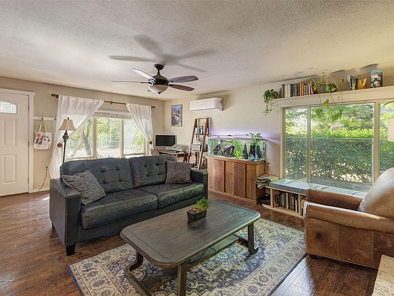Discover this beautifully remodeled home, thoughtfully renovated from top to bottom in 2017. This charming property offers 3 cozy bedrooms and a modern full bathroom. Step inside to appreciate the unique features that make this home truly special. The attached one-car garage with an automatic opener adds convenience and includes improved storage. The fenced yard is a private haven, featuring a 187-square-foot studio with new flooring and an inviting deck for summer evenings. Unwind under the Wisteria-covered pergola on the side patio, surrounded by mature Maples and pine trees. The living room boasts a cozy fireplace, perfect for cooler nights. Spanning 959 square feet, the home's durable metal roof and efficient mini-split ductless heat and AC unit ensure year-round comfort, while newer wall heaters in each bedroom provide added warmth during colder months. This home has been lovingly cared for and is ready to welcome new residents. Don't miss this charming property!