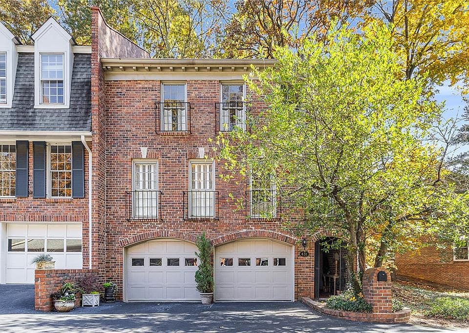 As you enter the private gated courtyard, you will immediately recognize that this is an exceptional property. Every room is beautifully appointed with charming details. The brick-paved courtyard is fully fenced, allowing you to entertain indoors and out year-round. And if you have a fur baby, the courtyard which opens to a quiet common area—makes walking your four-legged friend very convenient. The eat-in kitchen and banquet-sized dining room with custom inlay floors both open to the courtyard through French doors, making it perfect for entertaining while enjoying a beautiful day or evening. The kitchen features a beverage center, pantry, and an island with storage. The primary suite is extremely spacious, with three large closets and plenty of natural light. There are shutters throughout, stunning hardwood floors, and new carpet on the stairs and in the main-level full bath. The den on the main level, currently being enjoyed as a den/card room, can be a fourth bedroom just steps from the living area and kitchen. Unique to the townhomes in this community, this home has an oversized two-car garage with extra storage space! Autumn Chace provides easy access to shopping, hospitals and dining, and is just minutes from GA 400 and I-285. The community pool and gazebo make this the perfect place to live.