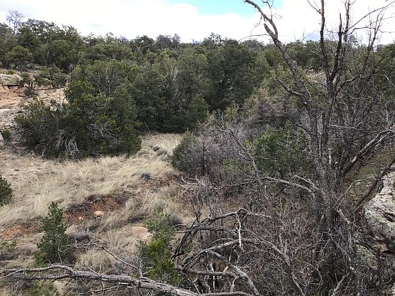 Property has a lot of trees and at the back of property a small canyon start. Has some good views in the distance and would be increased with opening up some area. Road access is rough, very rocky. POA dues are $15 per acre per year.