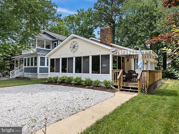 As the adage goes, location, location, location! How does an easy four block walk to toes in the sand sound? Or half a block to the Bethany Trolley? Listings in Bethany Beach this close to the ocean and this affordable rarely come on the market and this one is a must see. Welcome to 431 Collins Street in Bethany Beach Delaware. This classic three bedroom, two bath Nanticoke beach cottage comes fully furnished. You need only bring your bathing suit, toothbrush and a love for the salt life. This home has been lovingly maintained and recently updated with a brand new kitchen, updated bathrooms, luxury vinyl flooring, and many other features. Entering from the front deck to the living room, which is open to the dining room and kitchen, makes for great flow for entertaining. The sunny living room has a big screen TV over the fireplace. The kitchen boasts high-end cabinetry, quartz countertops, breakfast bar, and a huge pantry with wine fridge and plenty of storage. The home is generously outfitted with all the kitchen equipment, pre-stocked picnic baskets for the beach, wine glasses for parties, and anything else you could possibly need to make your beach home your dream home. The pantry has a water hook for a possible future bar sink, Off the dining room is the screened porch which runs the width of the house and is perfect for an evening of relaxation, with a big screen TV and large game table making for the ideal evening hangout spot. There are two very large bedrooms, the primary having an ensuite bath, and a secondary large bedroom with plenty of space including the laundry closet. There is a third bedroom staged as a TV room, with a fold-out queen sized sofa and TV making for great flexibility and extra space for guests. There is an additional large hall bathroom with bathtub and linen closet. Outside are two large sheds perfect for storing all your beach toys. There is also an outdoor shower. The driveway is large with space for up to six cars. But did we mention that it’s only four blocks from the beach? If you are ready to begin your beach dreams, come see 431 Collins!