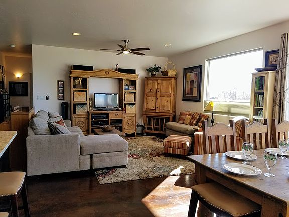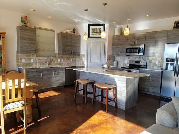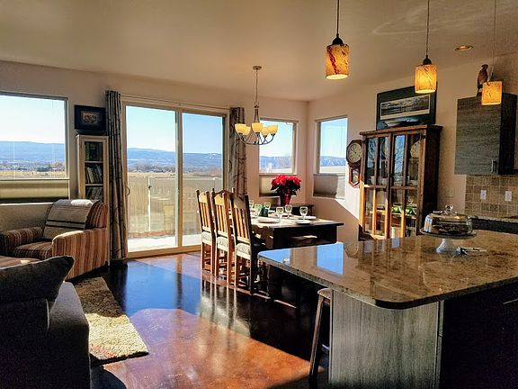 Quality built open concept rancher. Exceptional views, backs to open areas. Special features include: In Floor Hot Water Heat throughout, Acid Stained Concrete floors, 16 X 12 Gourmet island Kitchen, upgraded stainless steal appliances, upgraded cabinets and granite throughout. Top down bottom up blinds. Home is custom built and only one year old. Fenced and landscaped. Heated garage.