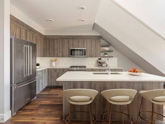 Lofted urban living reaches new heights in this stunning top-floor residence nestled in Speer. Soaring two-story ceilings and abundant windows bathe the open living space in natural light, creating a bright and modern retreat. Light, neutral wall color is perfectly complemented by beautiful flooring. The stylish kitchen inspires entertaining with an oversized center island, stainless steel appliances and sleek cabinetry with modern hardware. A spacious bedroom features a walk-through closet and a serene bath with a walk-in shower, while the versatile loft offers space for a home office, fitness area or lounge. Escape outdoors onto the private rooftop deck to take in panoramic city and mountain views, the perfect setting for enjoying al fresco gatherings in the Colorado sunshine. Built in 2018 and meticulously maintained by its single owner, this residence pairs contemporary design with urban convenience — just moments from Wash Park, vibrant restaurants, bars and coffee shops.