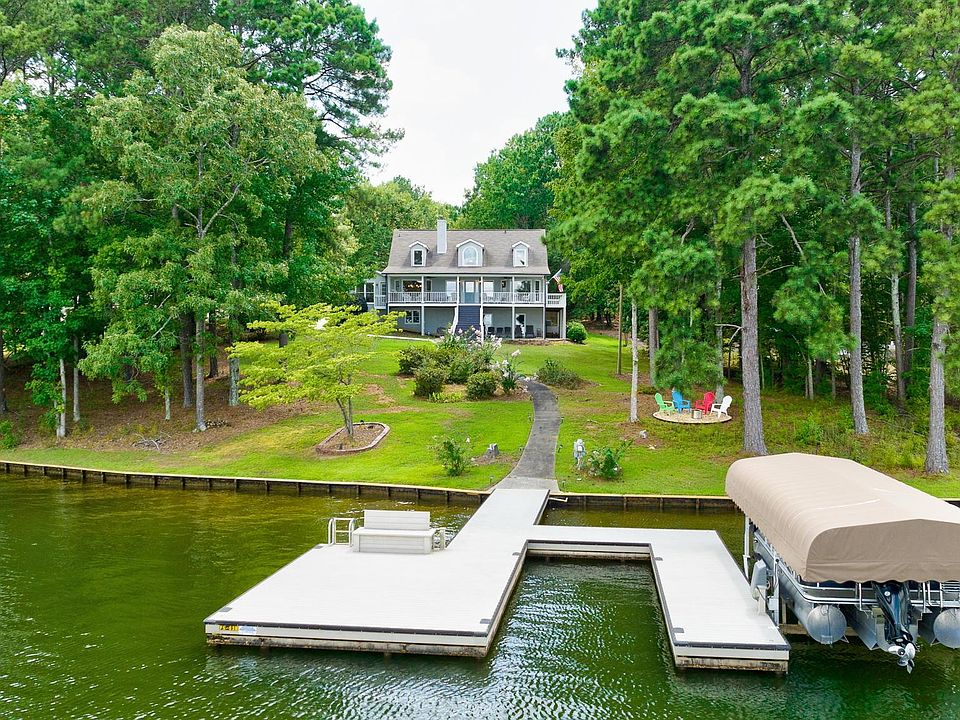 Experience the best of Lake Oconee- making memories for years to come! This spacious, family friendly lakefront home features 3 fully finished levels- 5 Bedrooms, 3.5 baths & is a true gem- perfectly nestled on a point lot with SPECTACULAR panoramic lake views from the porch, yard & dock! Featuring fresh interior & exterior paint, 186 feet of private lake frontage, new swimming dock with ladder, HUGE yard, wrap around rocking chair porch, fire pit & arguably one of the best lots on the lake on a quiet/private cove.
