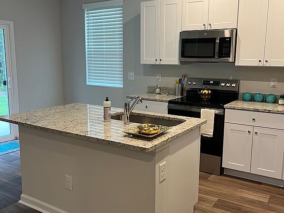 Stylish flooringCozy carpetSleek granite countertopsSpacious layoutModern kitchenStainless-steel appliancesDurable vinyl